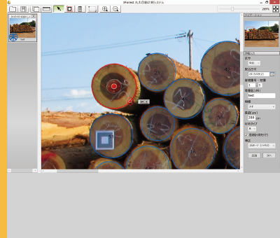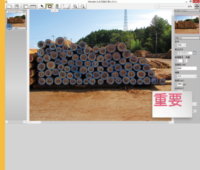 丸太画像計測システム 速測デジは、従来の1名が手検尺、1名が野帳に記入の煩雑さから開放されます!