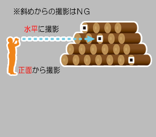 正面から撮影しカメラの高さは中心マーカーに向かって水平撮影。
